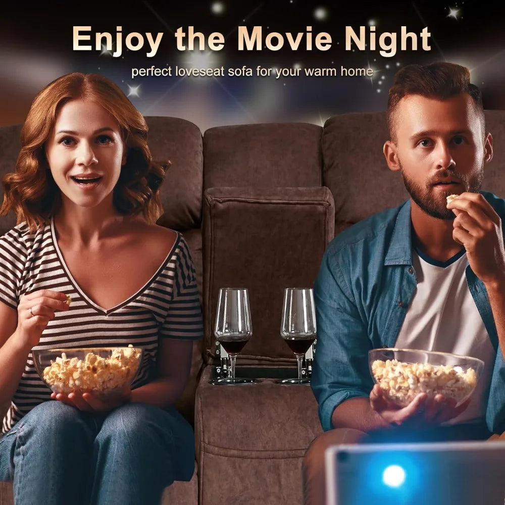 - Extra Storage Space: The side and front pocket of the double recliner not only provides a convenient storage solution to keep your essentials within reach but also offers additional storage options. The hidden storage compartment in the center console, that provides ample space (9.6"Lx 9.6"Wx 4.5"H), allowing you to store items like remote controls, magazines, or any other belongings you desire in an easily accessible location, while maintaining a tidy and organized home theater environment.