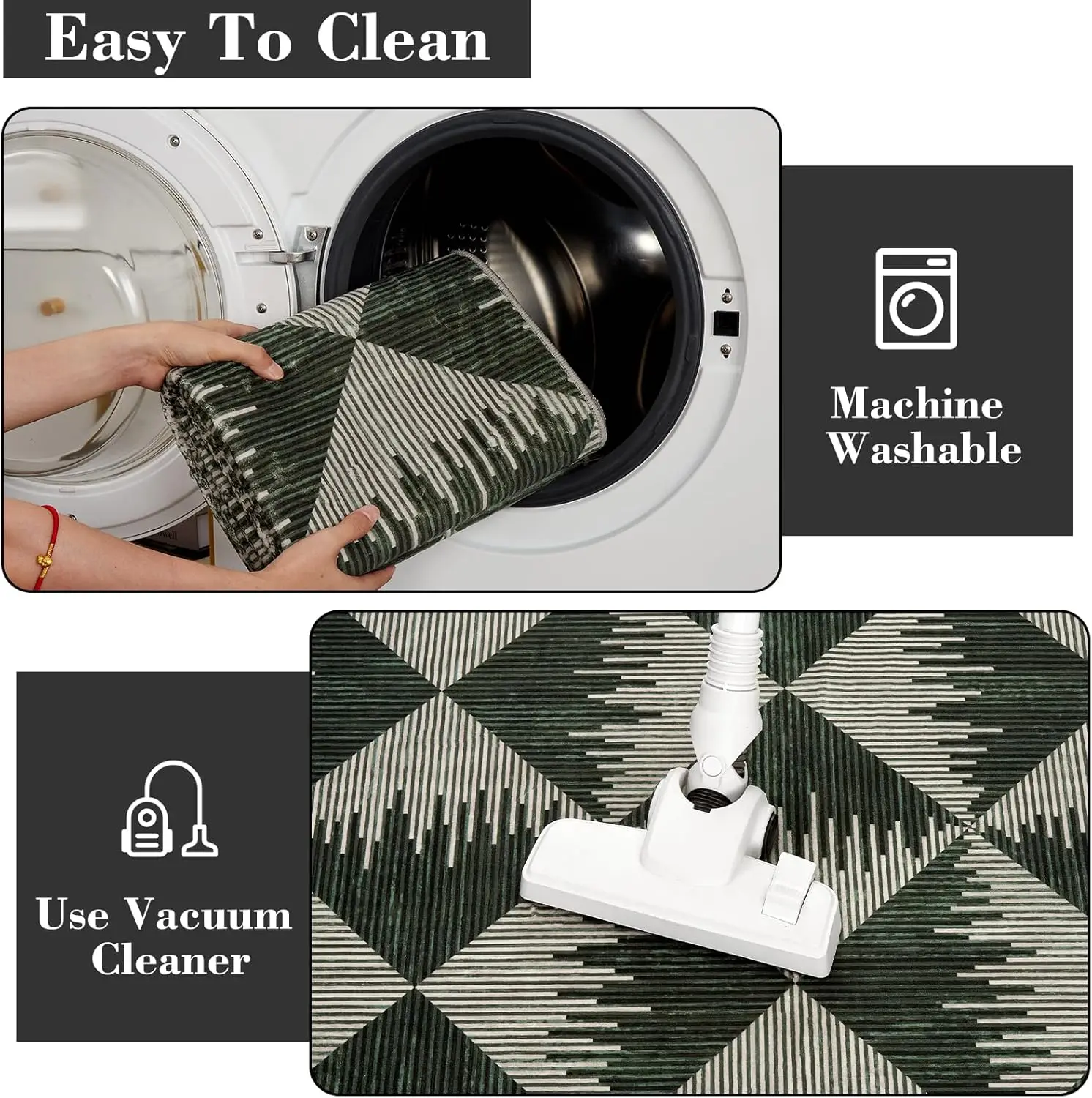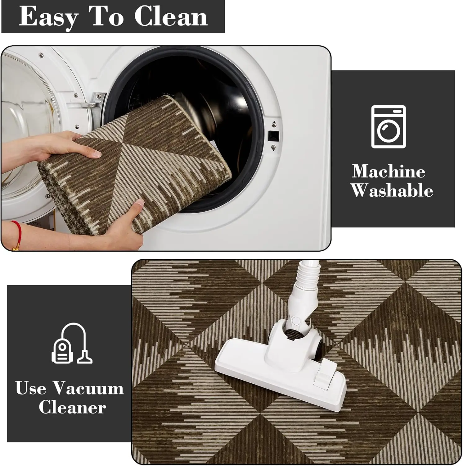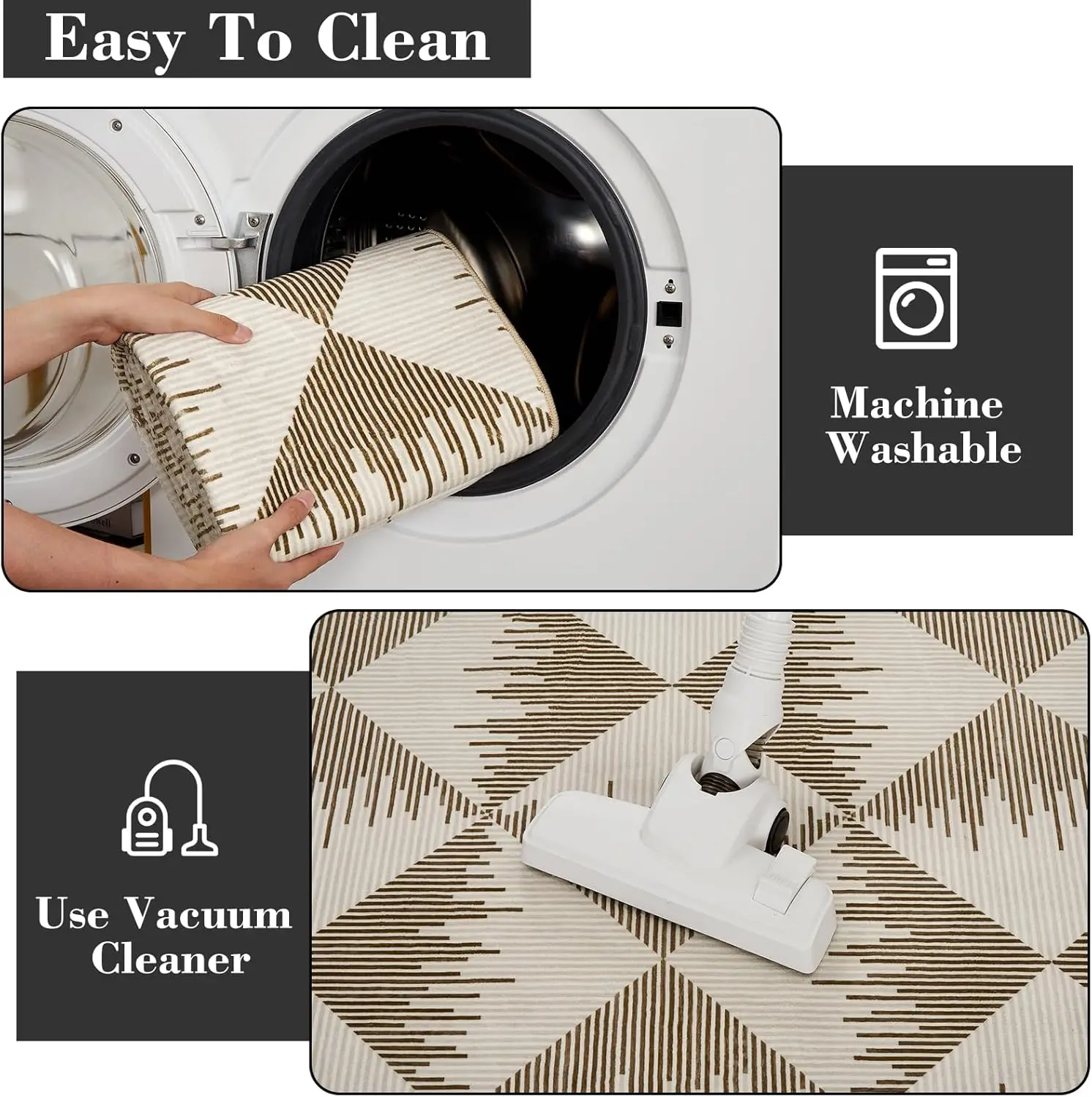 Area Rugs Modern Neutral Living Room Rug Machine Washable Rug for Bedroom Low Pile Farmhouse Carpet for Dining Room Entryway