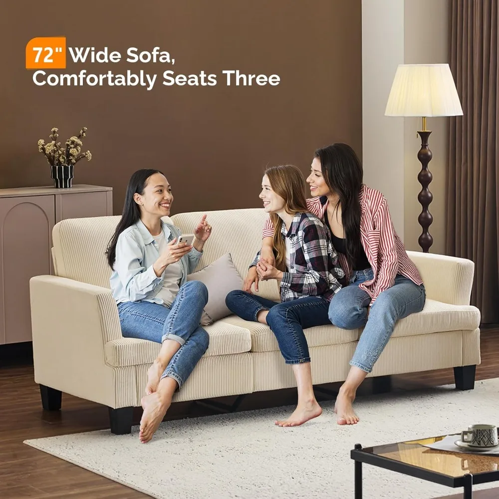 Beige 83 Sofa Couches for Living Room, Corduroy Modern Comfy 3 Seater Couch 25.6 Deep Seat Upholstery Cozy Sofas for Small