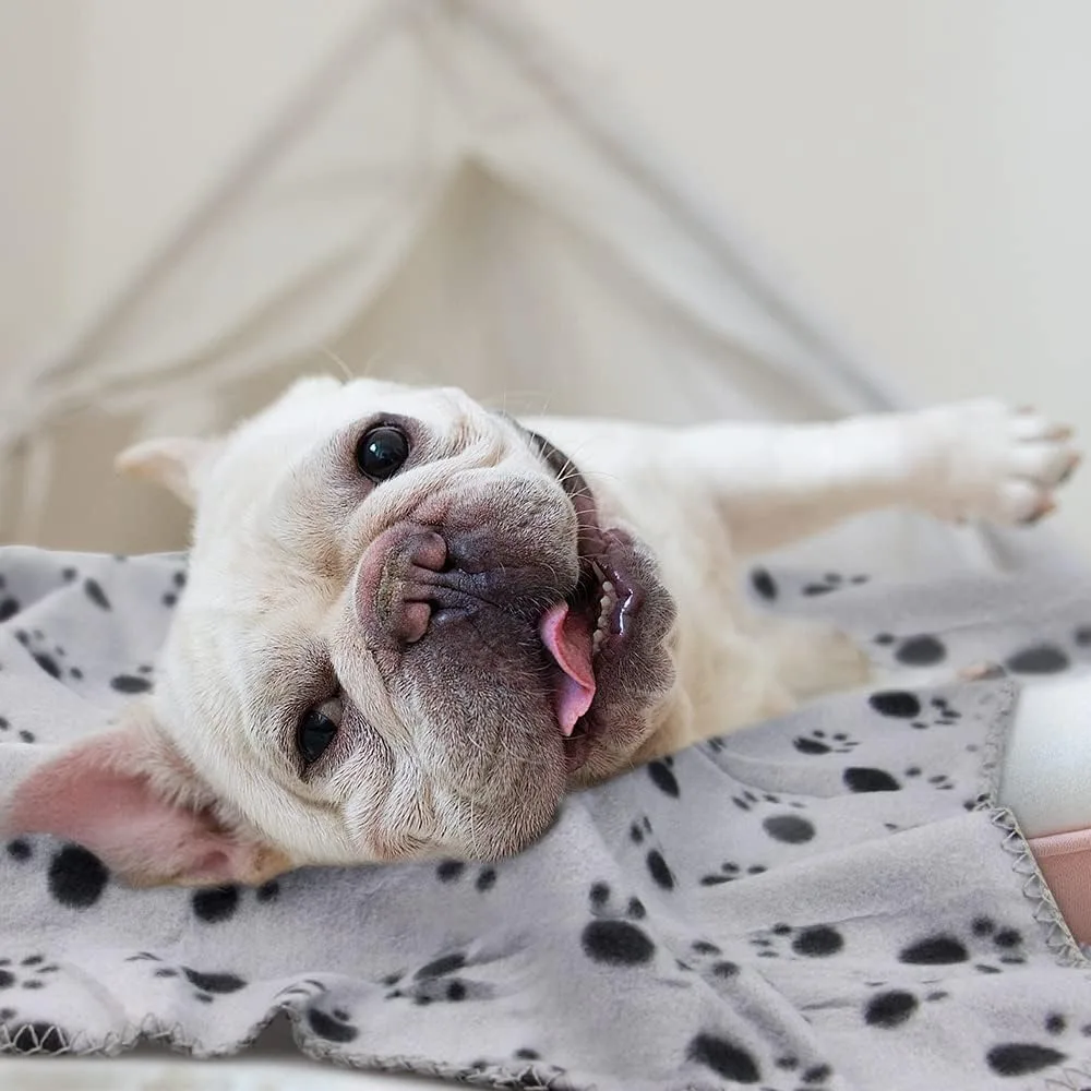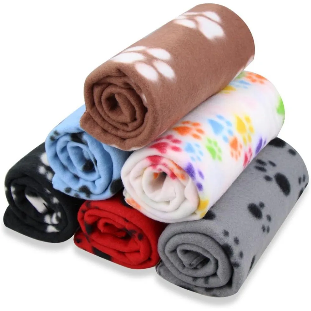 Cute Dog Cat Fleece Blankets with Paw Prints for Kitten Puppy and Small Animals Pack of 6 (Black, Brown, Blue, Grey, red and Wh