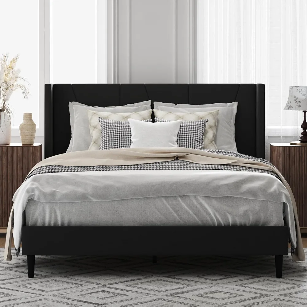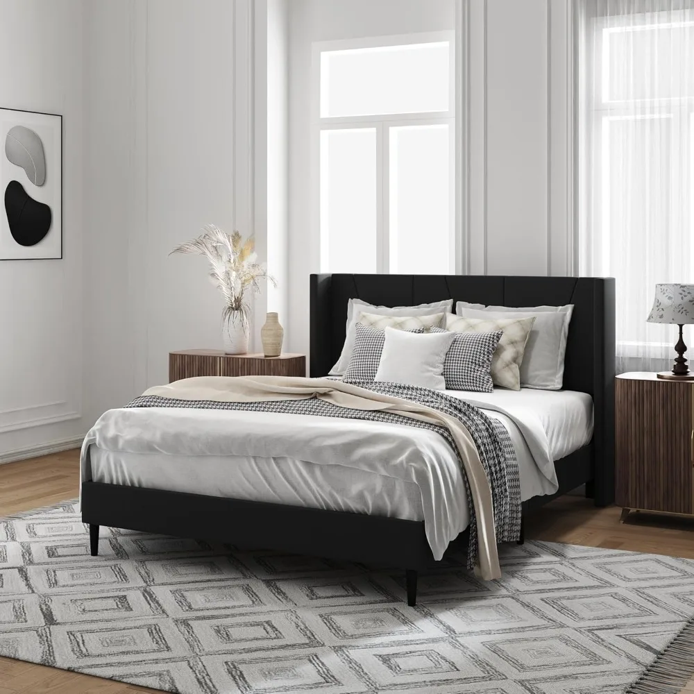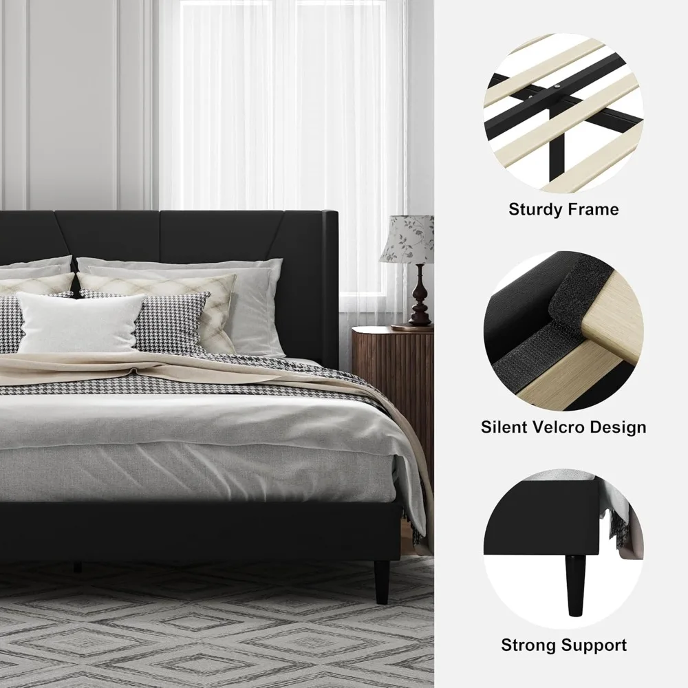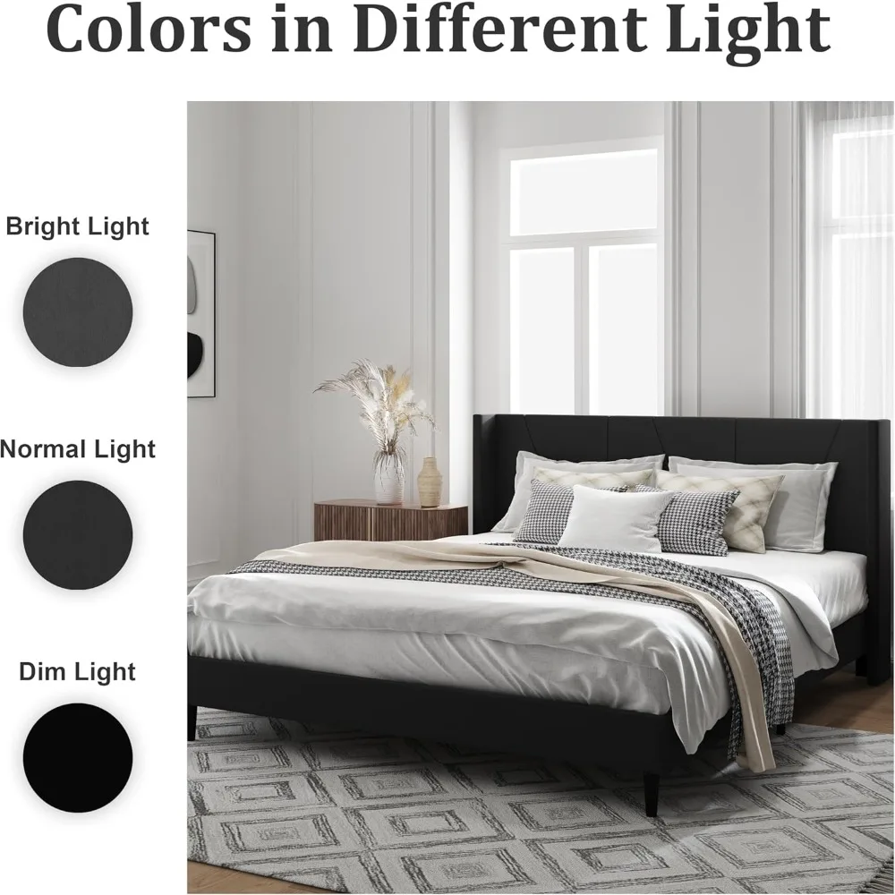 This item features an aesthetically pleasing design with a classic tufted headboard that brings a touch of elegance and modernity to your bedroom. The full bed frame serves as a stylish addition to your bedroom furniture. Constructed with a sturdy steel frame and thick wooden slats, along with heavy-duty support legs, this upholstered platform bed ensures durability and can support up to 1,000 pounds. There's no need for a spring box, as the bed frame can directly support your mattress, saving you money. The wooden slats are equipped with EVA soundproofing strips to minimize noise from friction, allowing for a peaceful and restful sleep. Assembly is straightforward, with clear instructions and labeled components, making it possible for adults to assemble the bed in approximately 40 minutes.