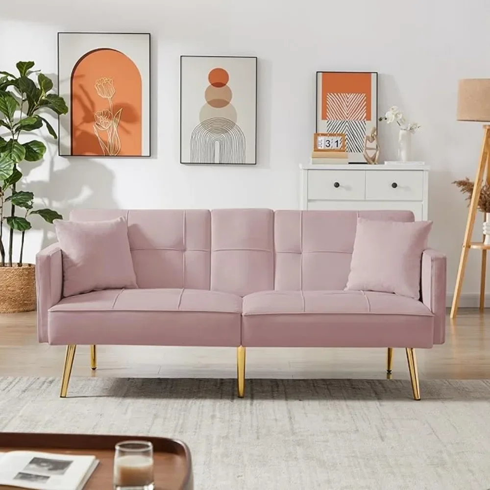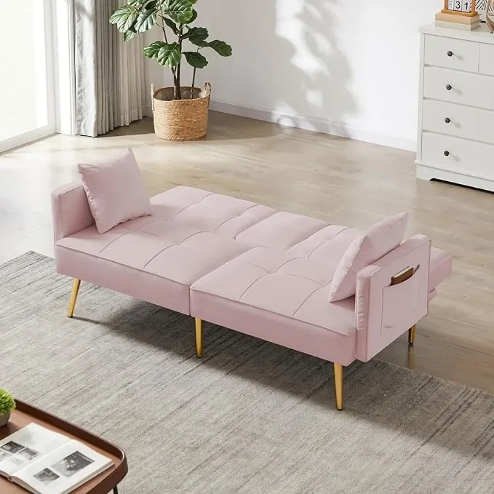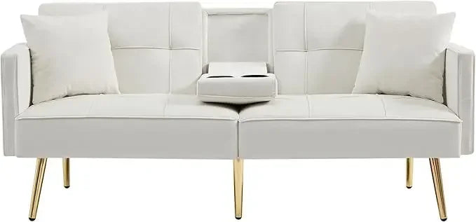 Futon Sofa Bed Convertible Daybed - Modern Linen Fabric Couch Bed with 2 Cup Holders & Removable Armrests, Multi-Functional Love