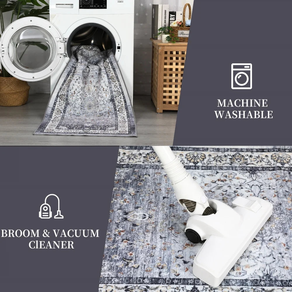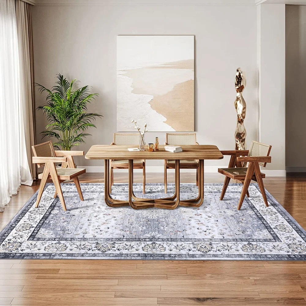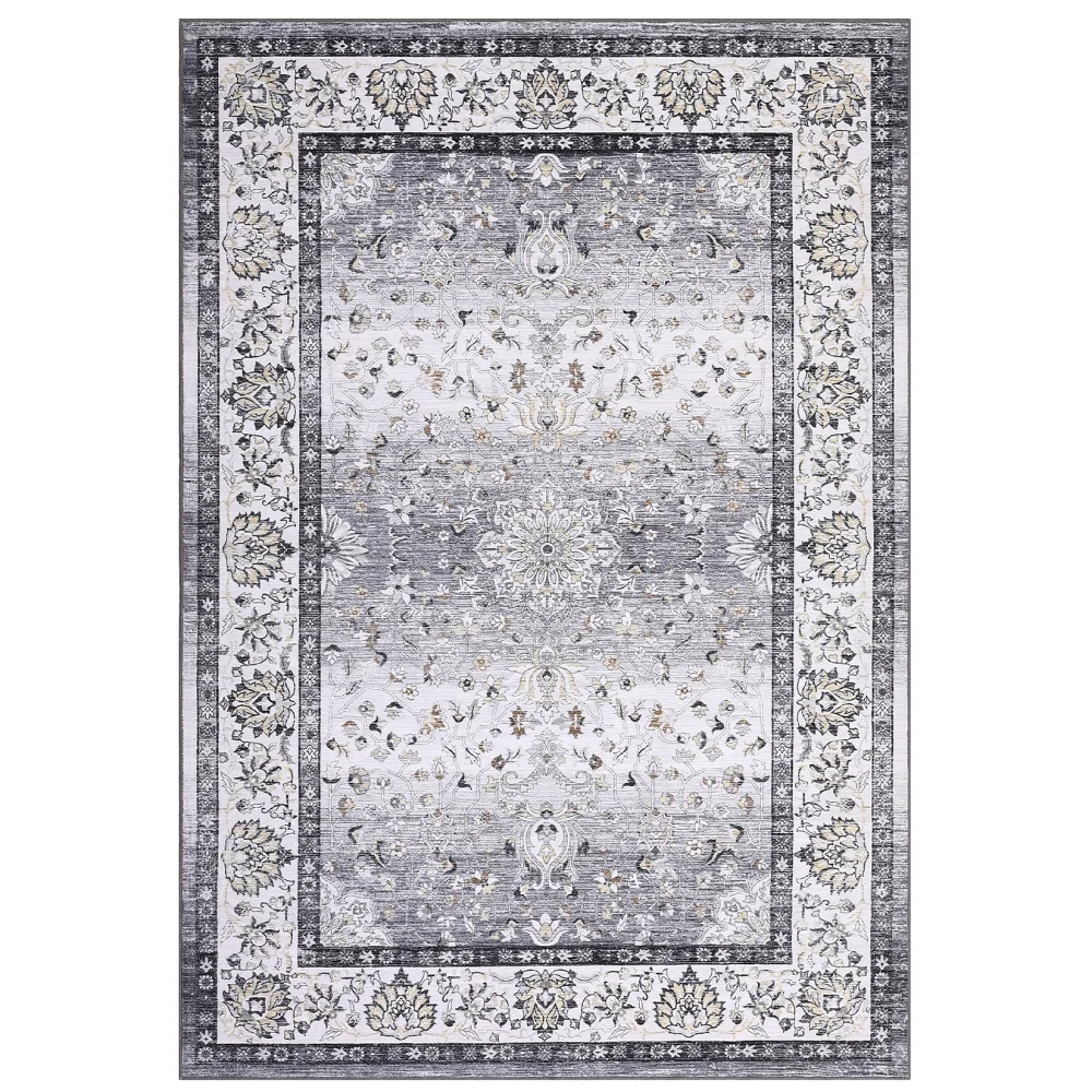 Area Rug 8x10 Washable Rugs Vintage Living Room Rug Floral Print Rug Low Pile Large Rug Farmhouse Thin Border Rug Non-Slip Distressed Carpet for Bedroom Dining Room Office,Grey