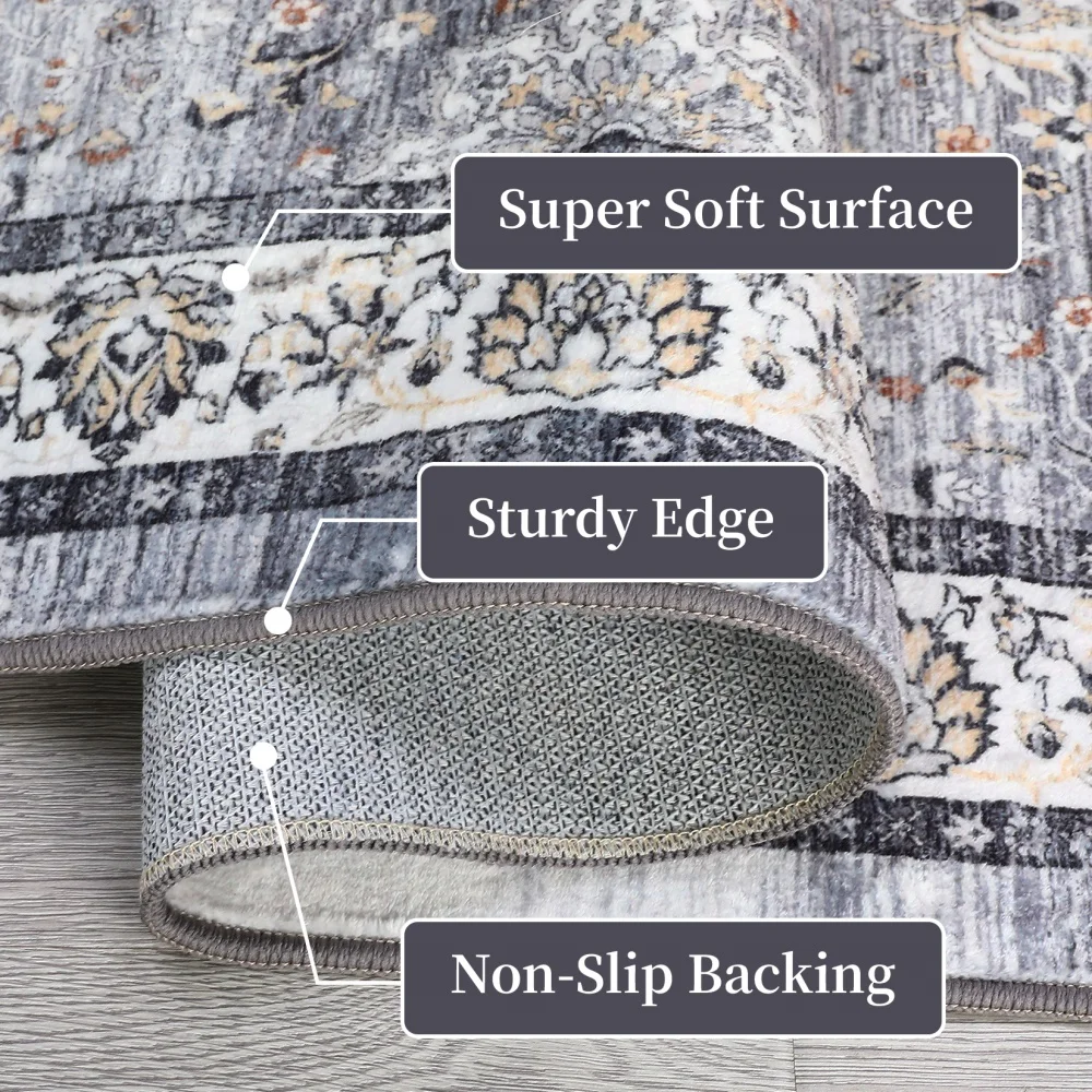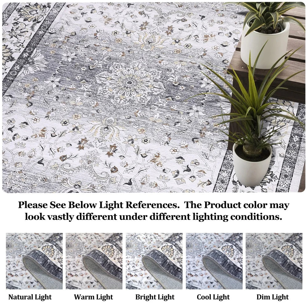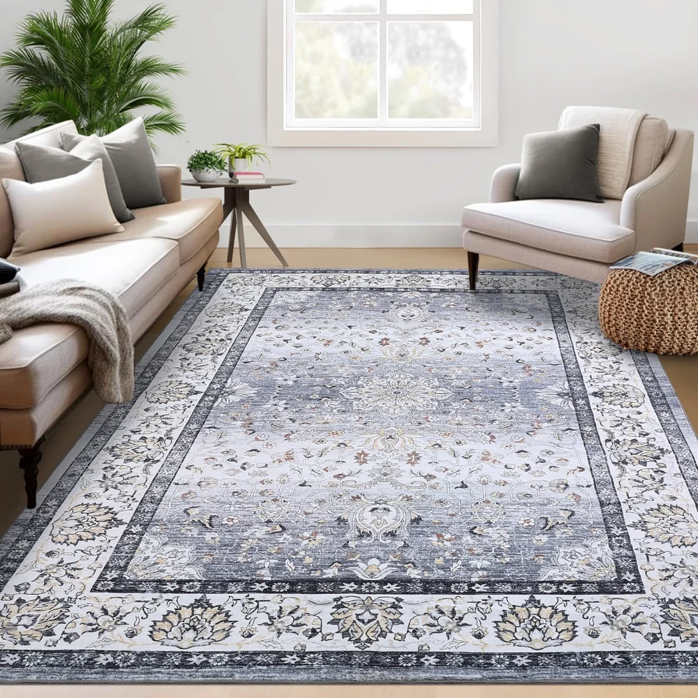 Large Area Rug 8x10ft Washable Rug Soft Vintage Distressed Floor Carpet Low Pile Rug for Bedroom Living Room