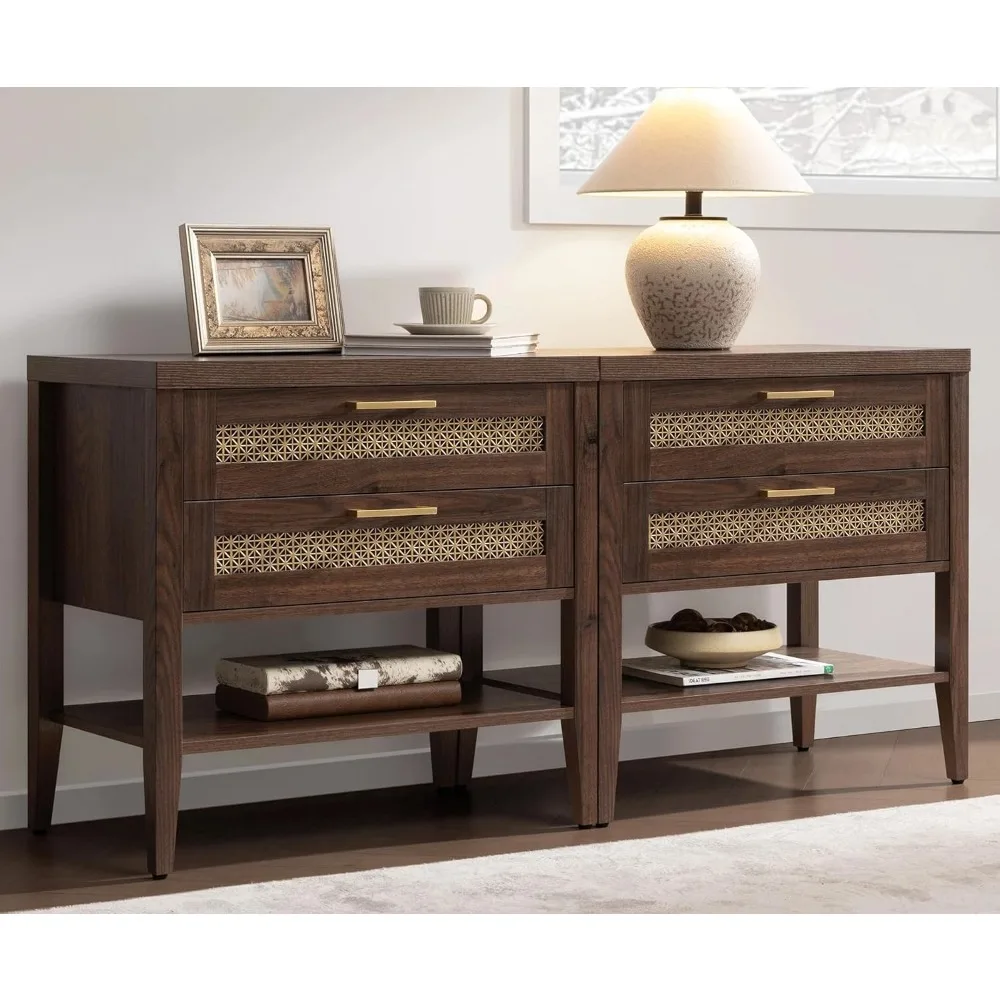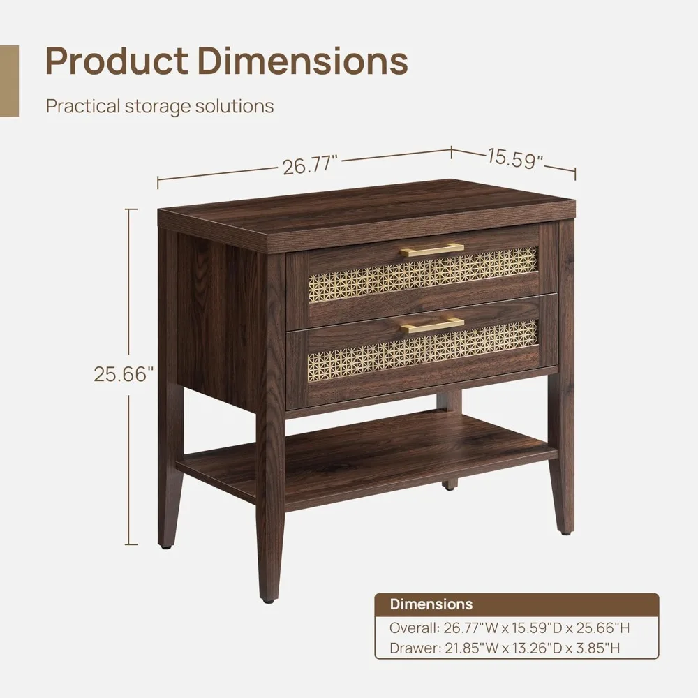 - 【Ample Storage for Everyday Life】 Two deep drawers + one open shelf = triple the organization power! Measuring 26.8" W × 15.6" D × 25.7" H, our large nightstands set of 2 offer ample space for your personal items. Plus, the open shelf below is perfect for displaying decorative pieces or keeping frequently-used items within easy reach.