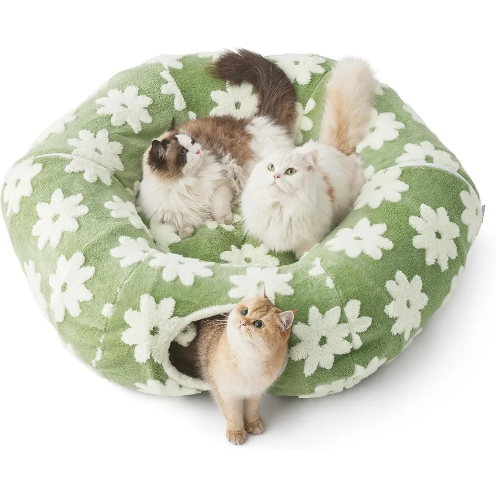 Lesure Large Cat Tunnel Bed - Cute Donut Bed for Indoor Cats with Washable Circle Cushion, Round Pet Peekaboo Cave Toy for Multi