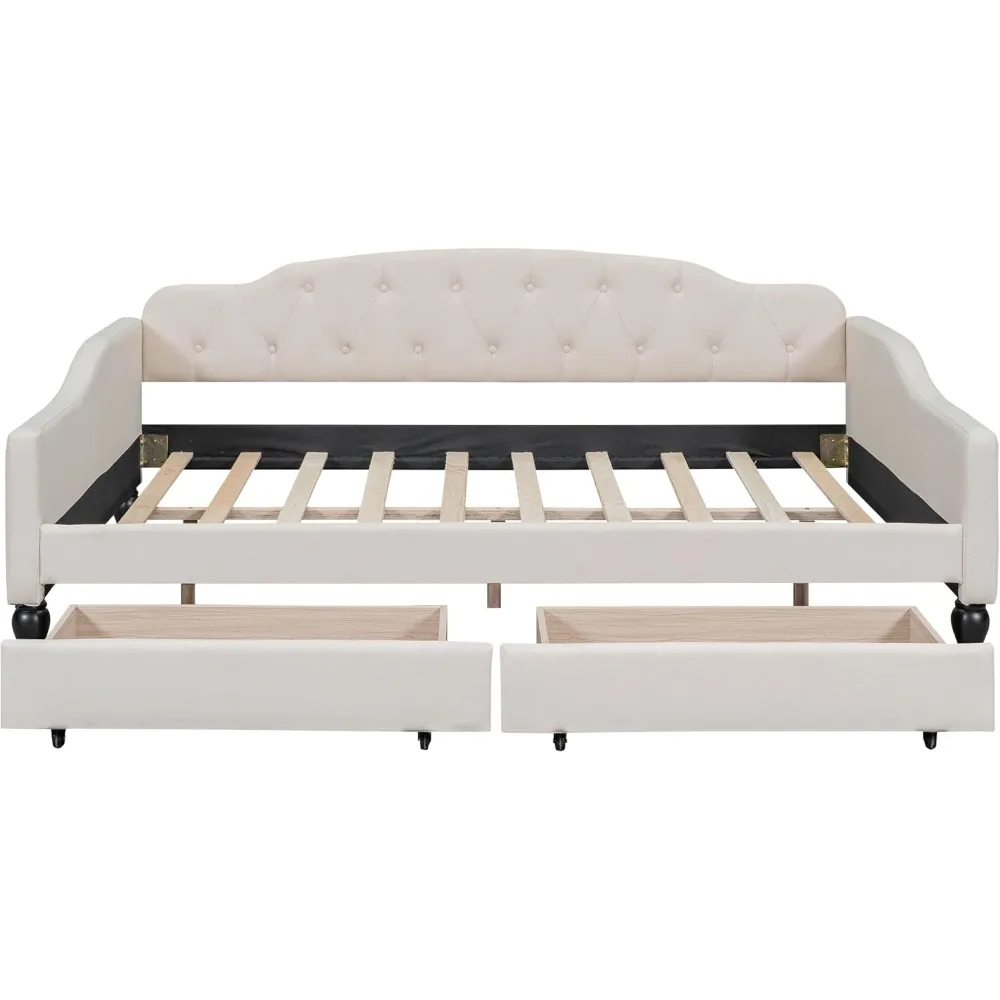 living room sofa, Full Size Upholstered Tufted Daybed with Two Drawers,Linen Sofa Bed Small Space Bedroom Livingroom Guest Room