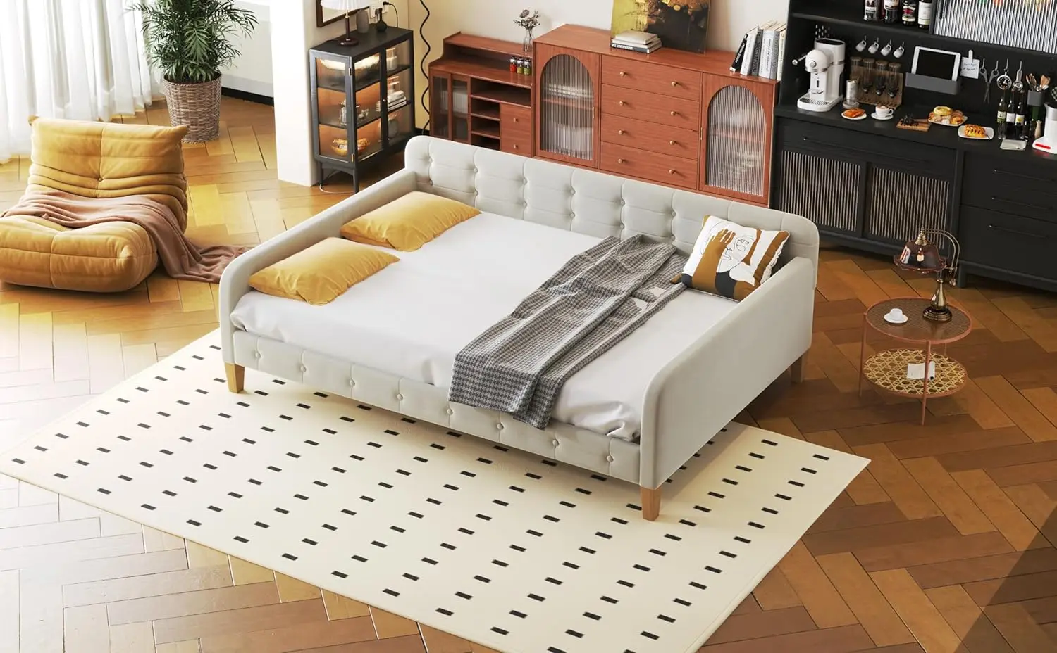 - [Functional Daybed] Designed to meet your needs, this exceptional piece of living room furniture not only offers a comfortable seating experience as a sofa but also accommodates overnight guests, providing an extra sleeping area.