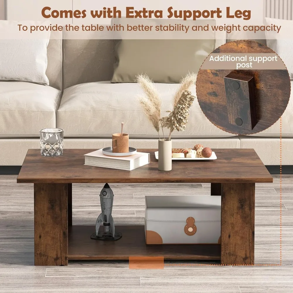 - Sizable 2-tier Storage Space: This practical coffee table features a 2-tier design that you'll get an extra-large open shelf to store your everyday items, like books or scented candles. You can also place your game console or stereo on the storage shelf so you can turn your coffee table into an entertainment center.